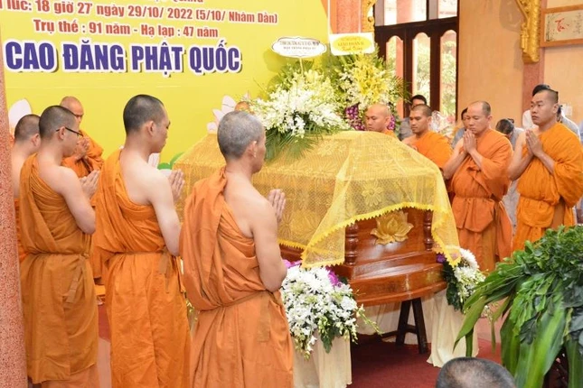 Đại diện Ban lãnh đạo Giáo đoàn III Hệ phái Khất sĩ đọc điếu văn tưởng niệm ghi nhận, tri ân công đức to lớn của cố Hòa thượng cho sự phát triển của Hệ phái Khất sĩ Giáo đoàn III; ngưỡng nguyện Giác linh cố Hoà thượng cao đăng Phật quốc, sớm trở lại Ta-bà để làm bậc mô phạm cho hàng Tăng Ni, Phật tử nương theo tu học.