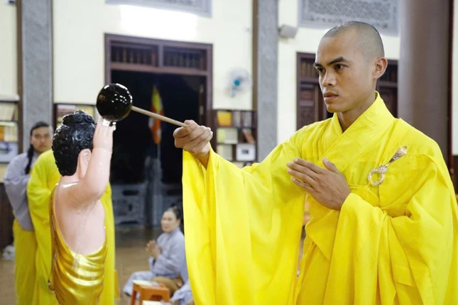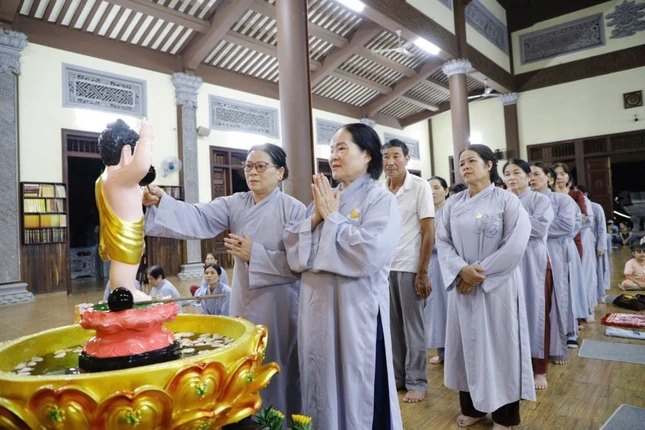 GNO - Trong không khí hân hoan Kính mừng Đại lễ Vesak Liên Hiệp Quốc 2025, Phật đản Phật lịch 2569, tối 28-4 (1-4-Ất Tỵ), tại chùa Pháp Hoa (TP.Gia Nghĩa) chính thức diễn ra nghi thức khai kinh bạch Phật, Tắm Phật.