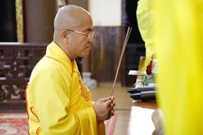 Buổi lễ dưới sự hướng dẫn của Thượng tọa Thích Quảng Hiền, Ủy viên Hội đồng Trị sự, Trưởng ban Trị sự tỉnh Đắk Nông, trụ trì chùa Pháp Hoa cùng chư Tăng.