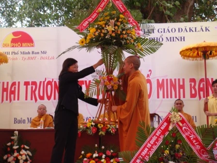 Về phía chính quyền có ông Lê Tấn Đức - Phó Chủ tịch UBMTTQ tỉnh Daklak cùng đại diện các sở ban ngành, chính quyền các cấp tỉnh, thành phố và địa phương cùng nam nữ Phật tử gần xa tham dự.