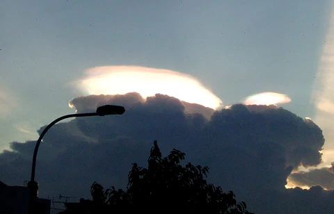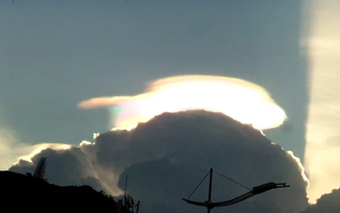 Chiều 8/7, trên bầu trời Vũng Tàu xuất hiện một hình ảnh khác thường. Phía sau đám mây đen to có một đám mây sáng màu sắc lung linh như vầng hào quang.