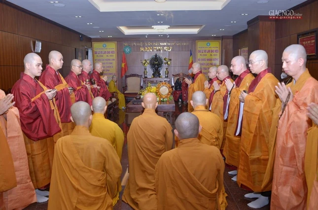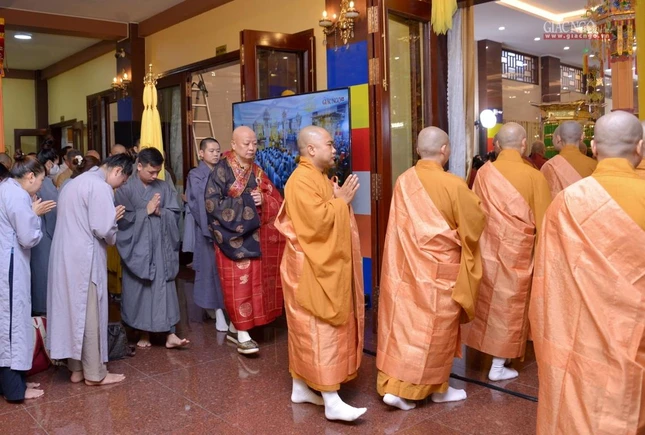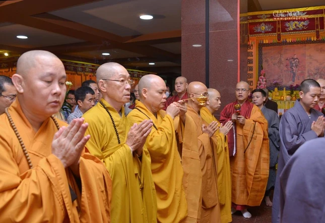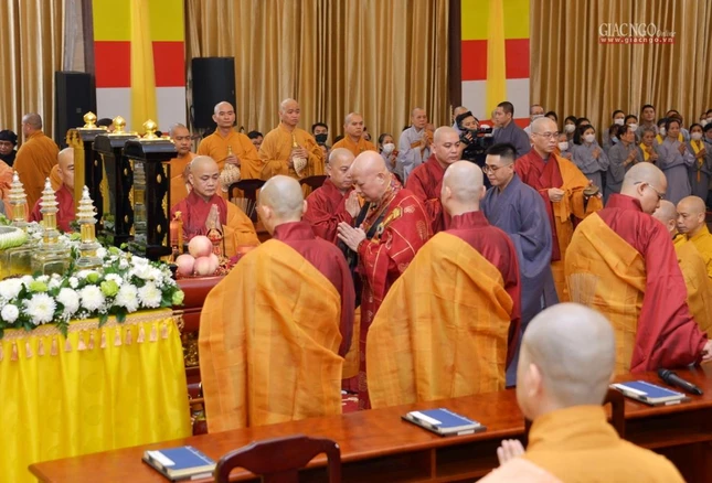 GNO - Sáng nay, 9-3-2026 (21 tháng Giêng năm Bính Ngọ), Ban Tổ chức Lễ tang và Ban Điều hành Thiền phái Lâm tế Chúc Thánh Việt Nam cùng môn đồ pháp quyến đã trang nghiêm cử hành Lễ truy niệm, phụng tống kim quan Trưởng lão Hòa thượng Thích Như Tín đến Đài hỏa táng Sala Long Thành - Đồng Nai để trà-tỳ.