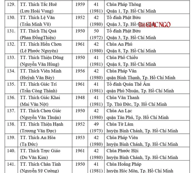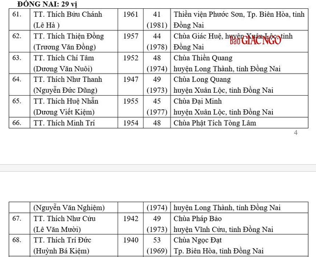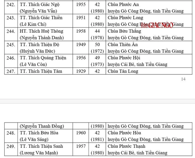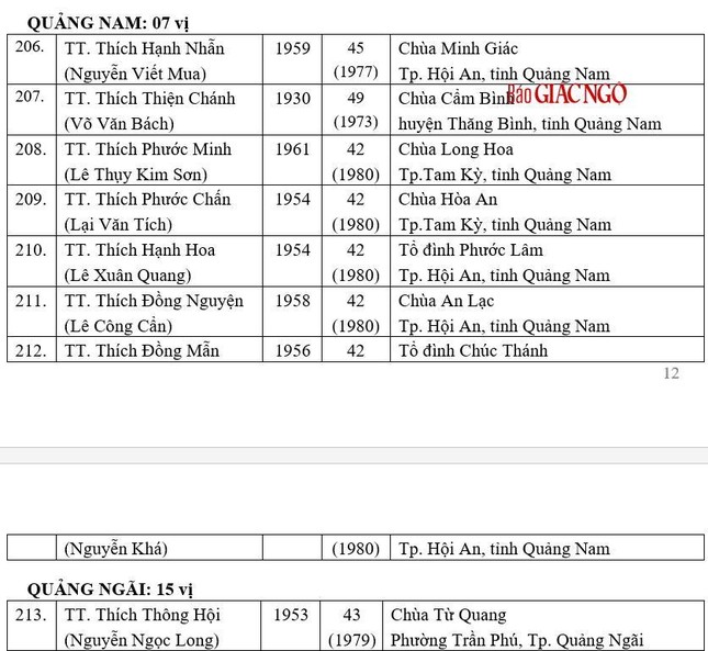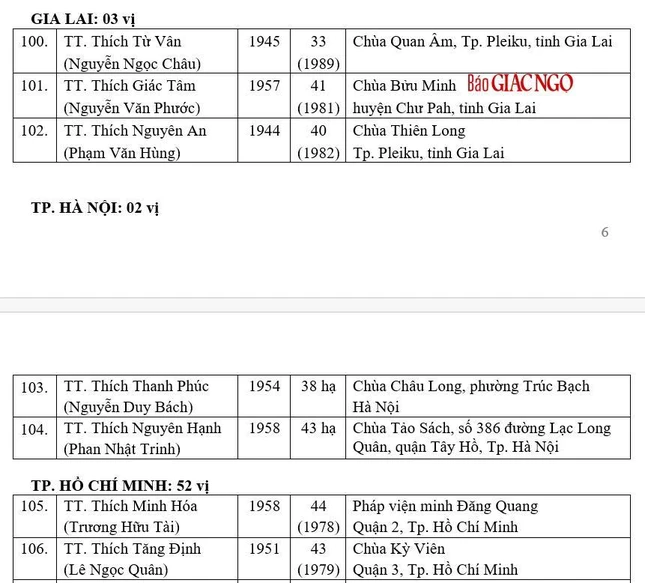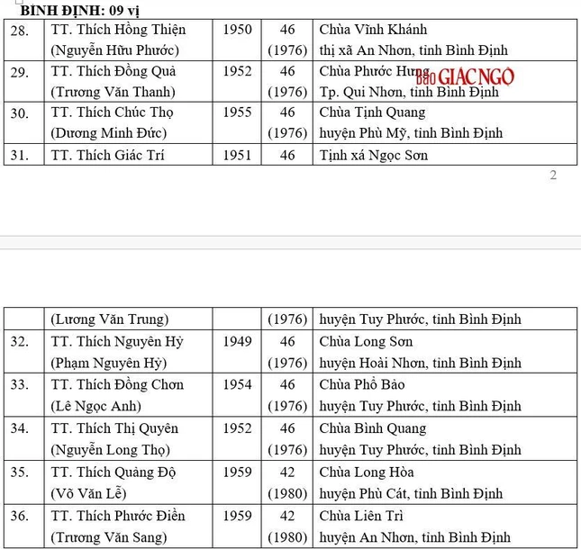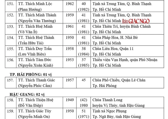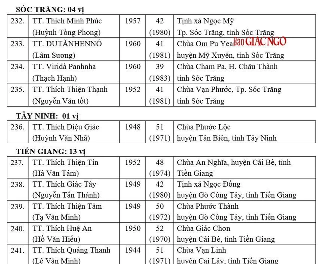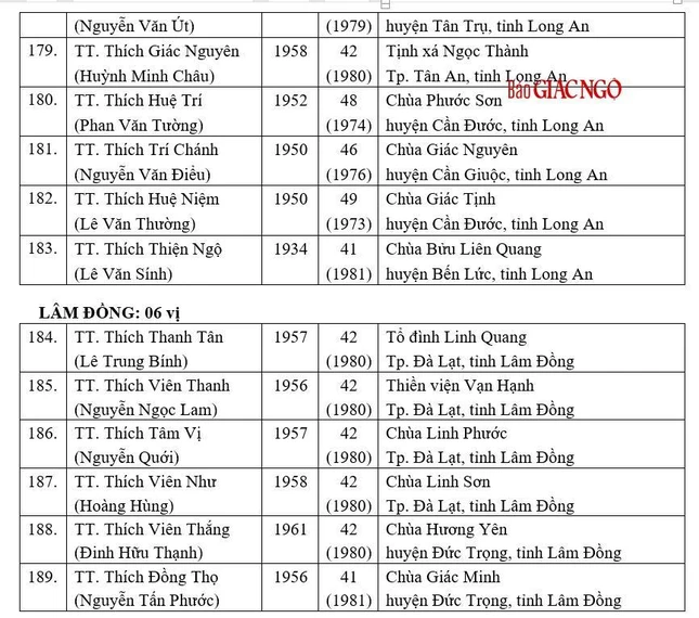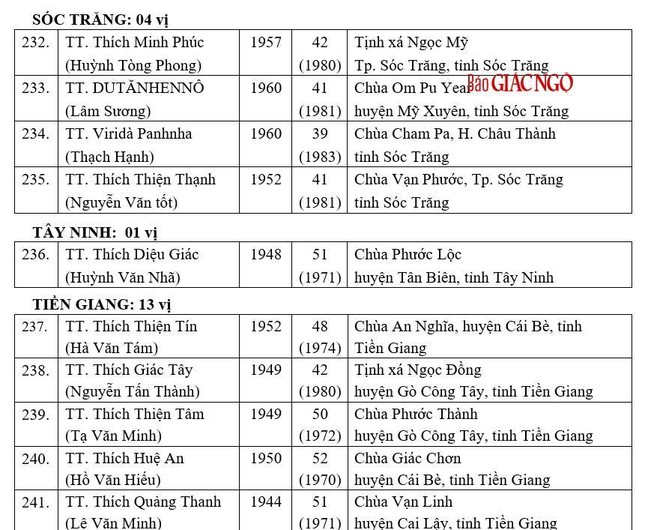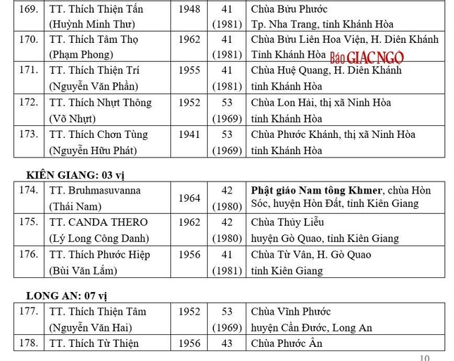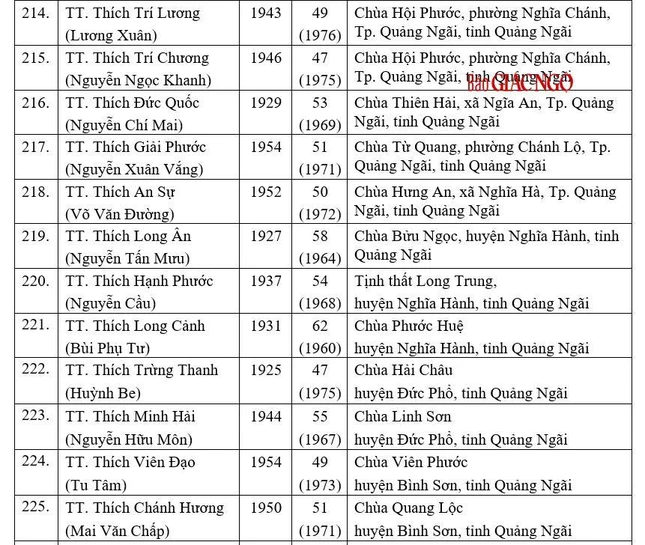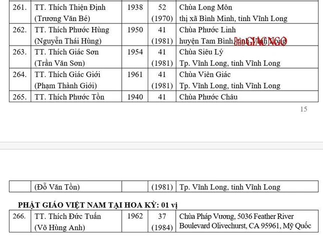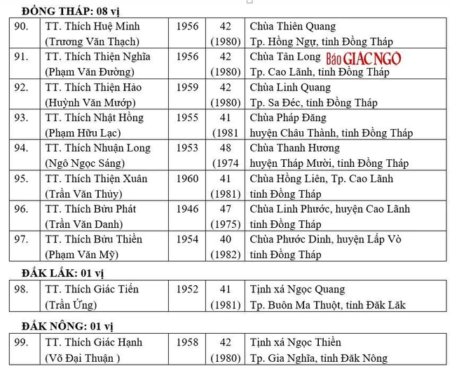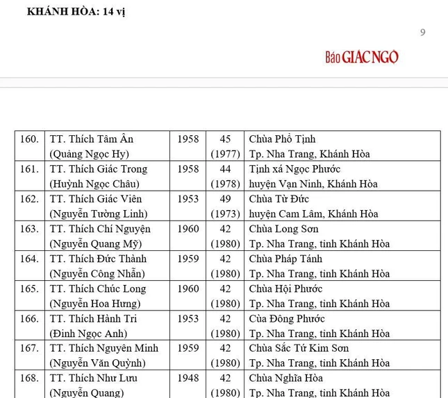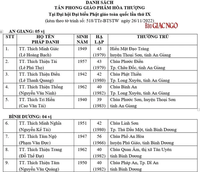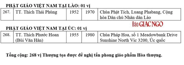 GNO - Tại Đại hội IX GHPGVN, 268 vị Thượng tọa được chính thức tấn phong lên giáo phẩm Hòa thượng. Báo Giác Ngộ đăng đầy đủ danh sách này.