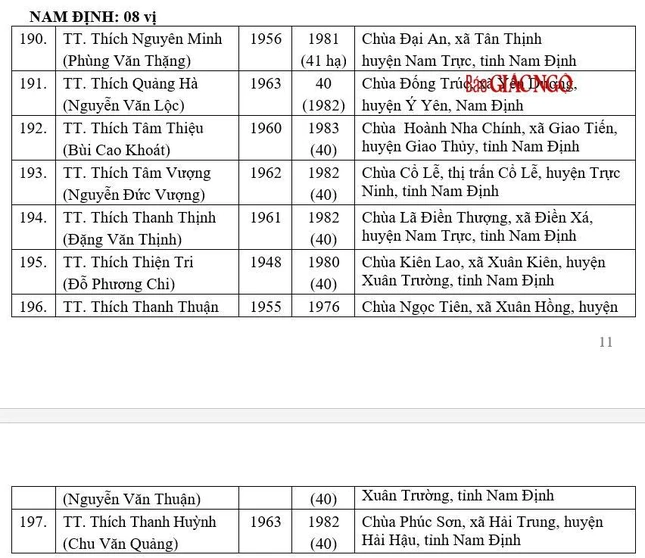 Danh sách 268 vị được tấn phong giáo phẩm Hòa thượng tại Đại hội IX GHPGVN