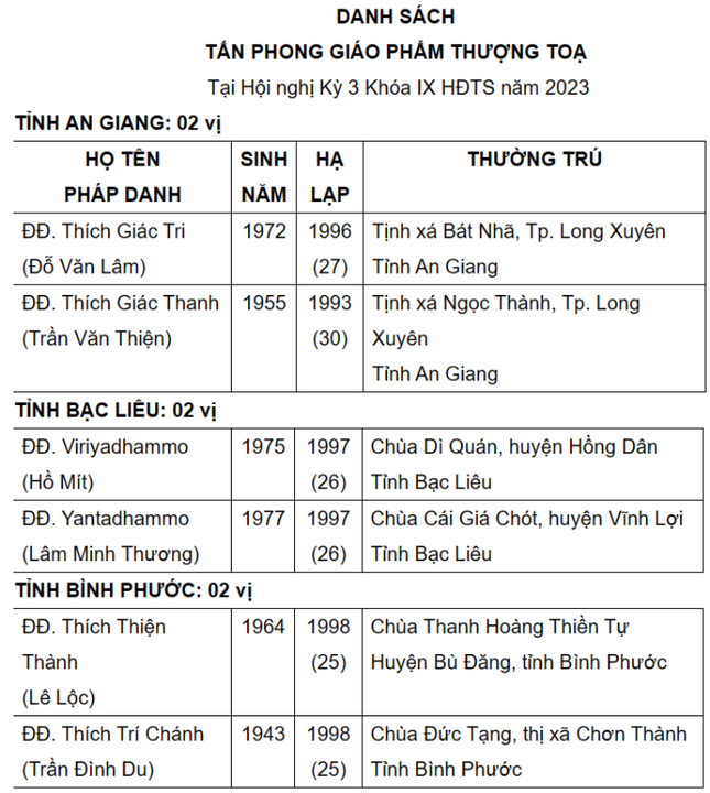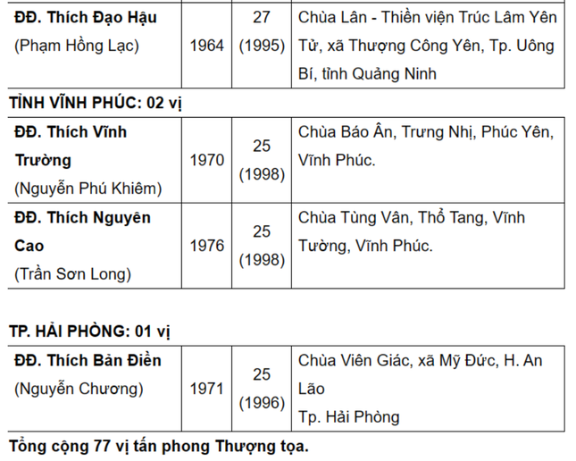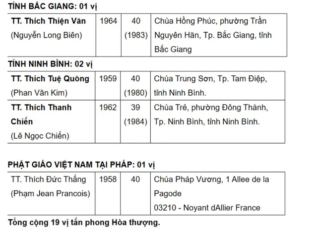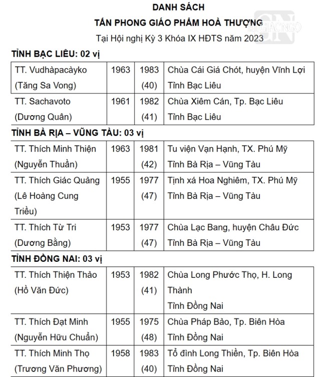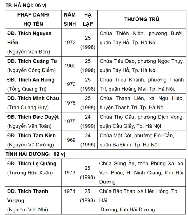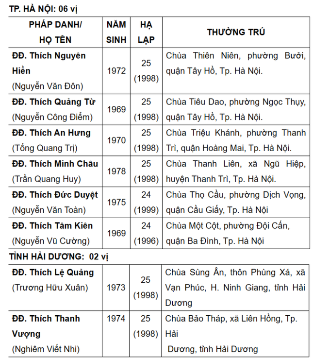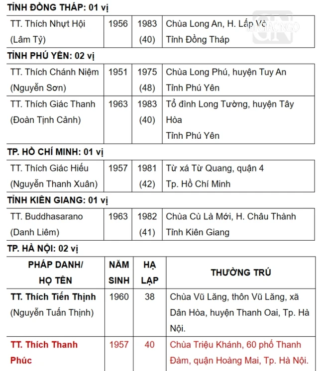 Được biết, danh sách này sẽ được Ban Thường trực Hội đồng Trị sự, Ban Tăng sự T.Ư đệ trình Đức Pháp chủ và Hội đồng Chứng minh xem xét, phê chuẩn.