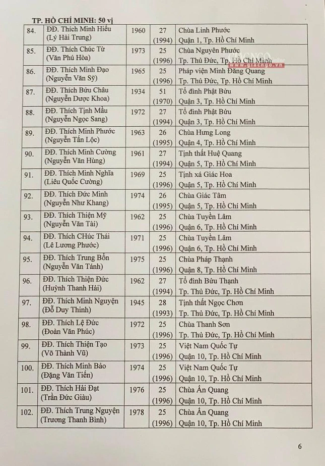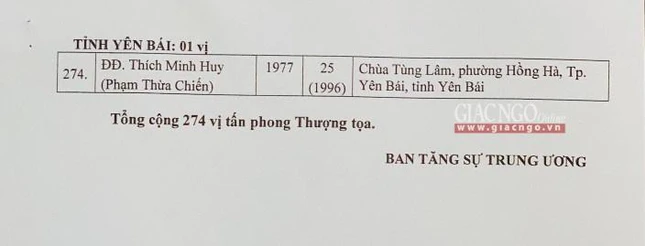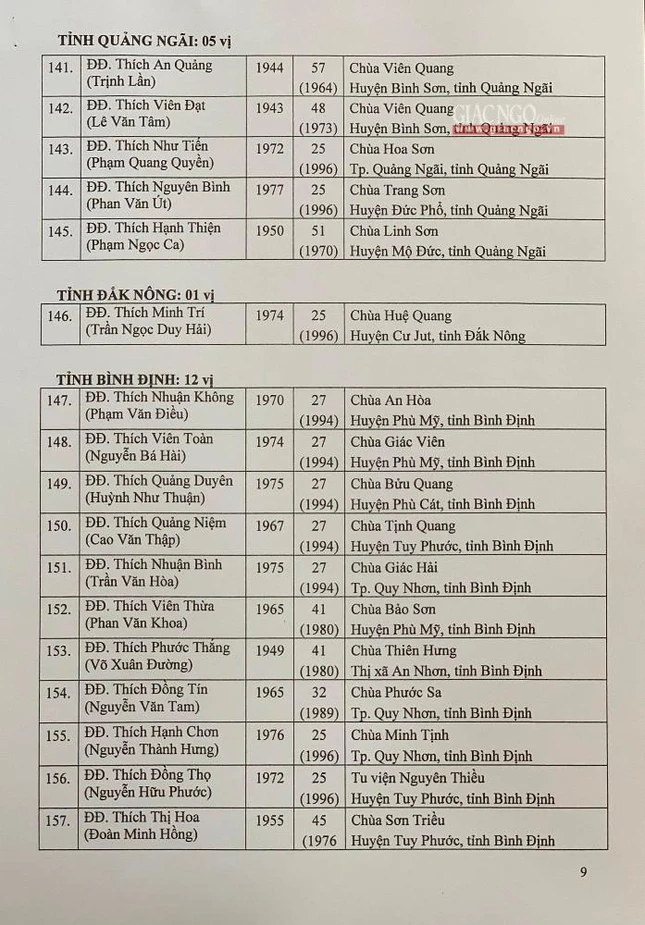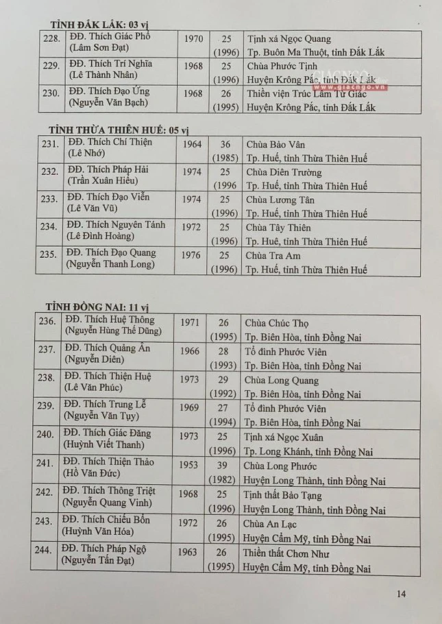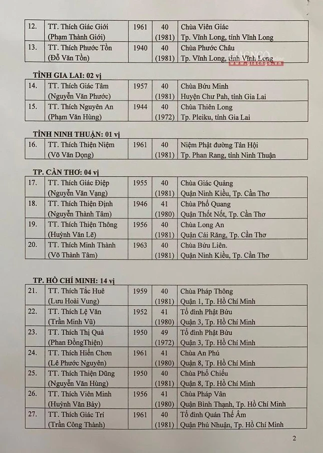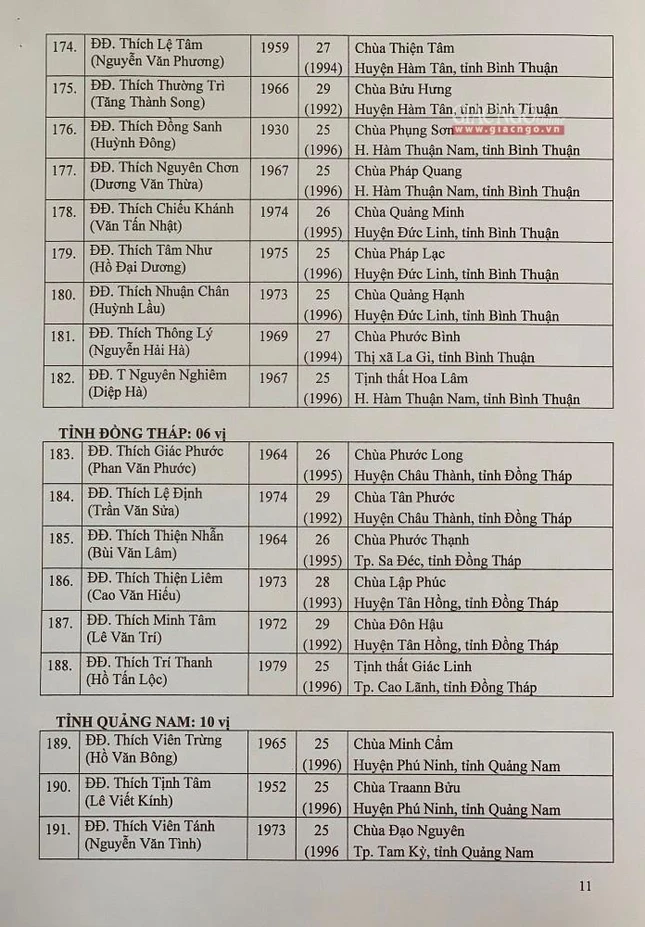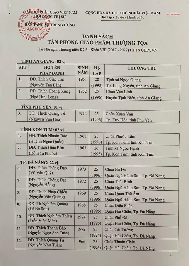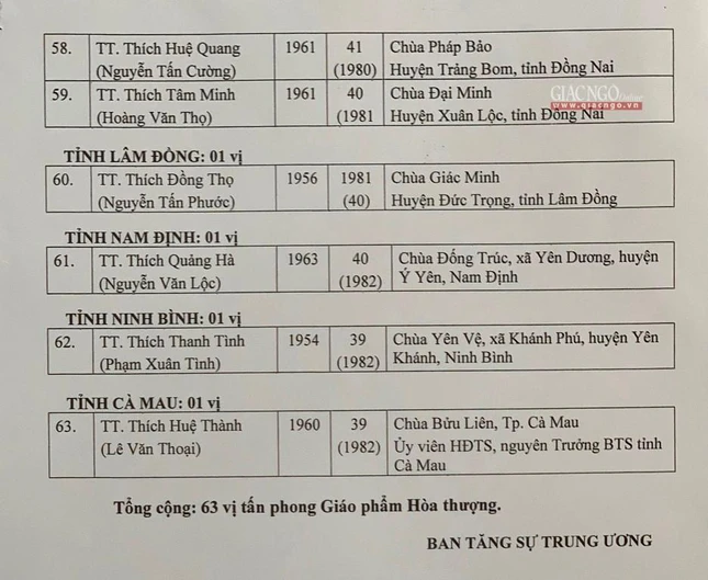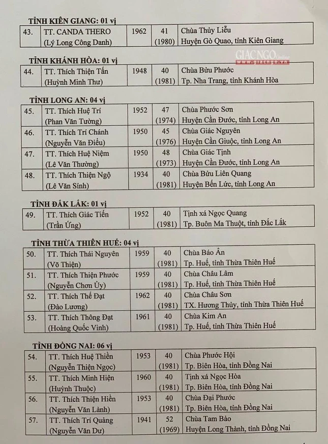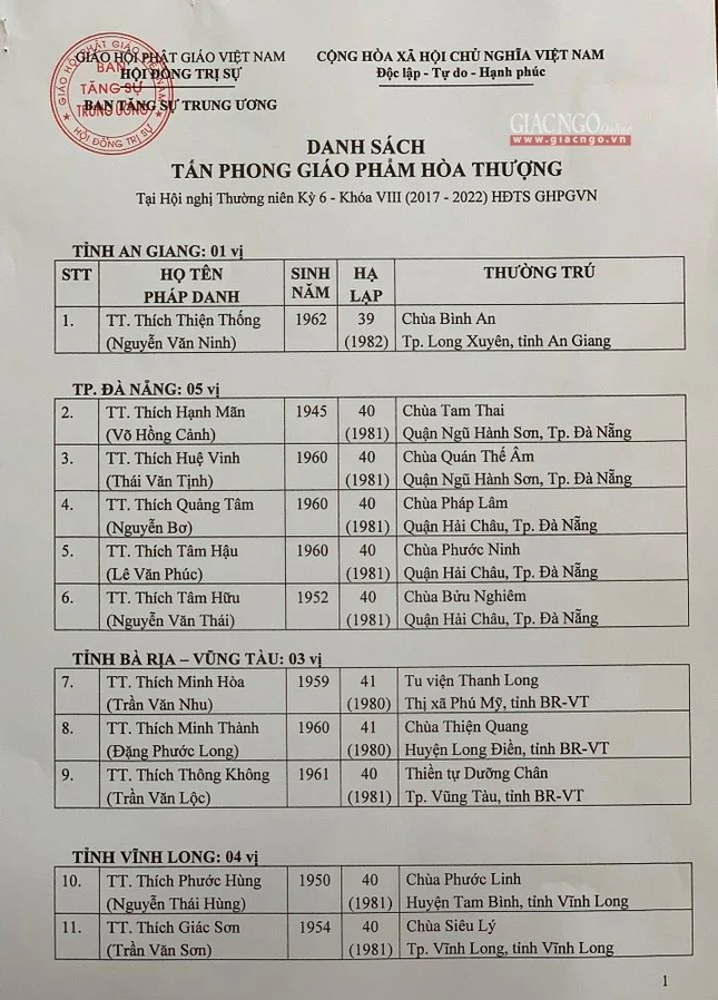 Giác Ngộ online sẽ cập nhật danh sách tấn phong giáo phẩm Ni trưởng, Ni sư đến bạn đọc.