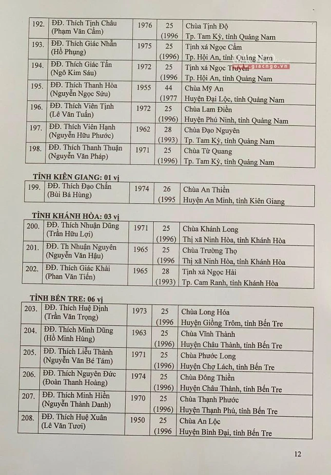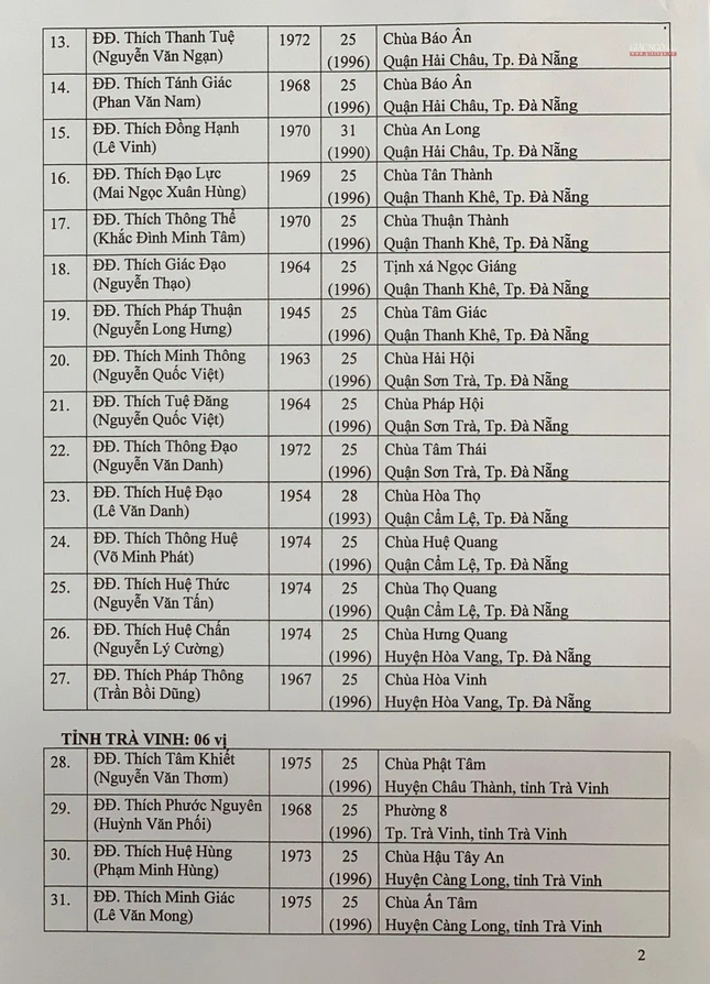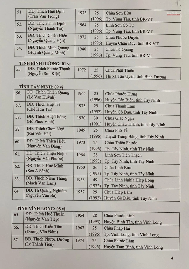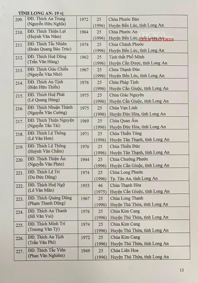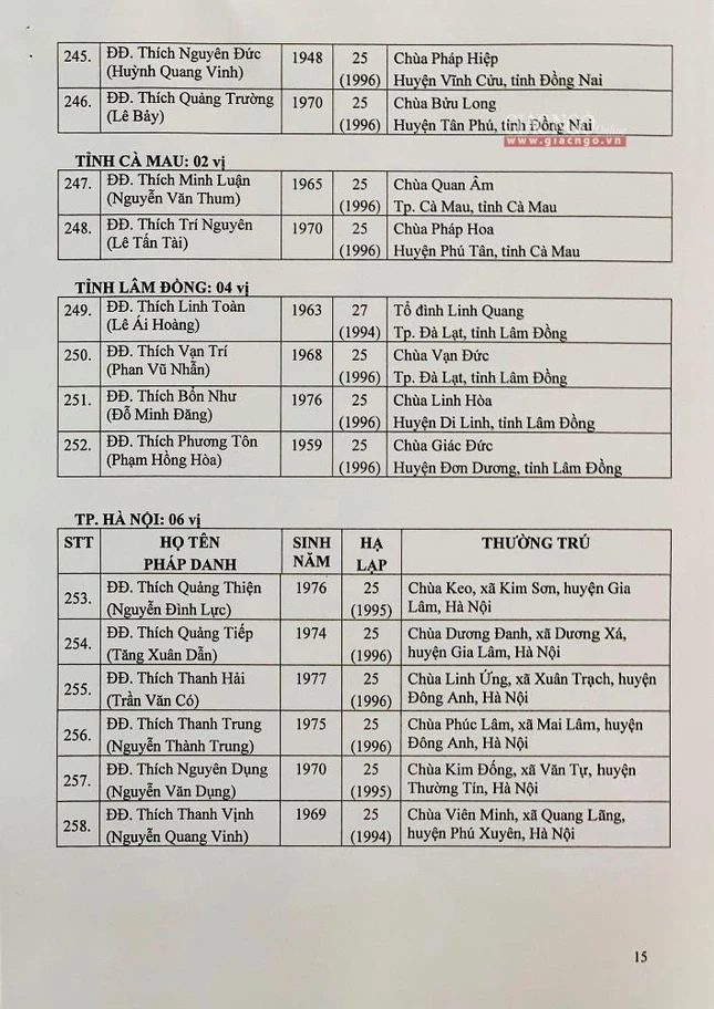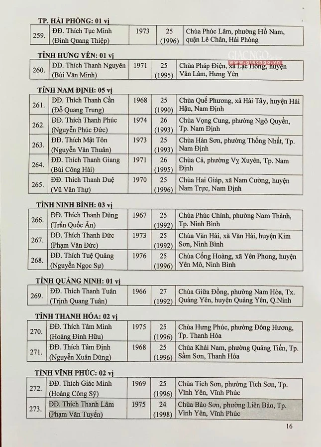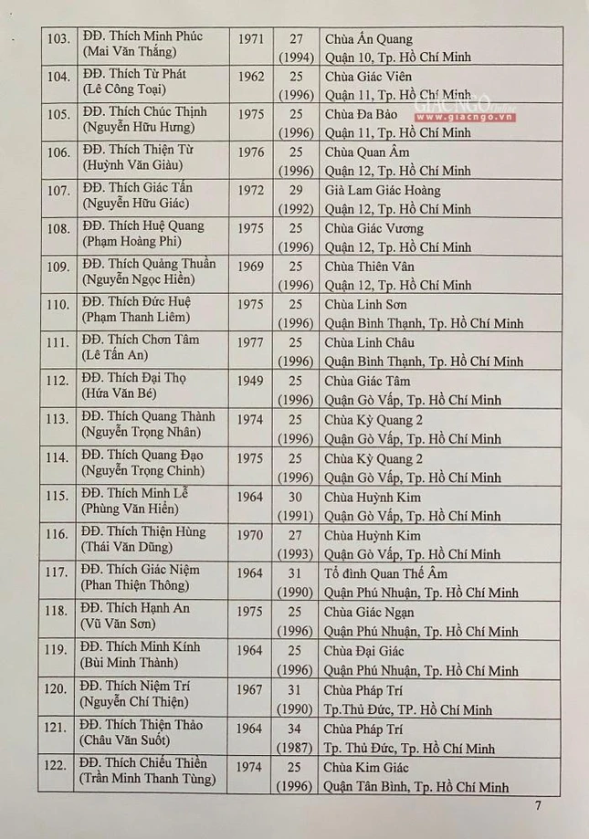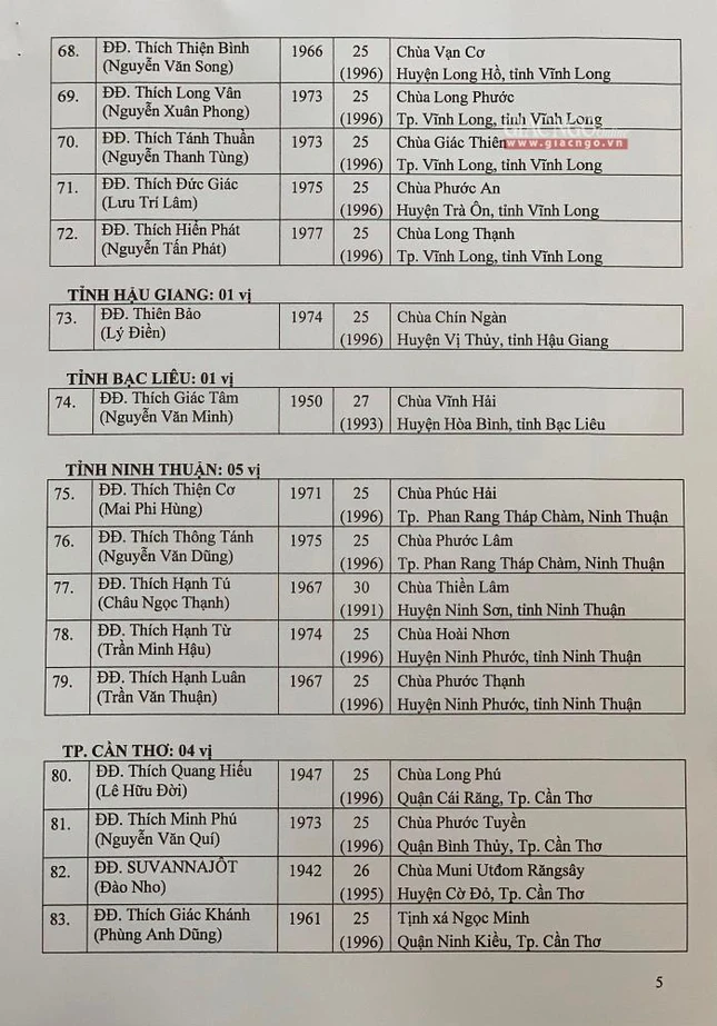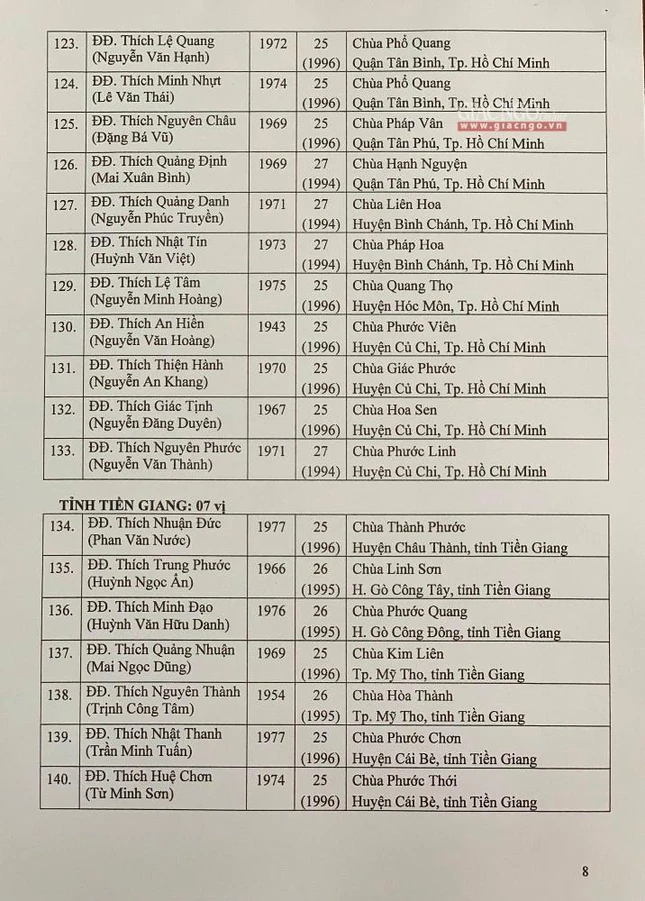 Giác Ngộ online sẽ cập nhật danh sách tấn phong giáo phẩm Ni trưởng, Ni sư đến bạn đọc.