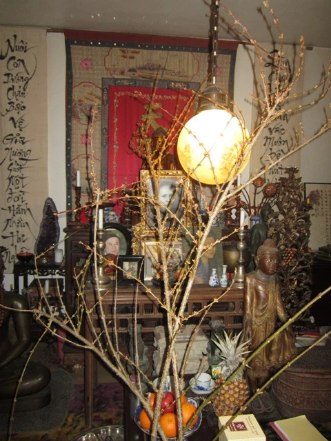Thế là năm nay ăn Tết xa Huế, nhưng nhà lại có đủ tứ quý là Phật, Tâm, Mai, Đào, tất cả đều là tượng trưng cho chân, thiện, mỹ. Lời chúc Tết Giáp Ngọ của Thái Kim Lan.