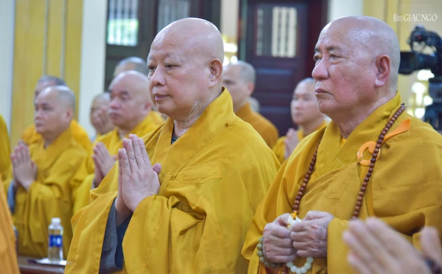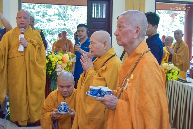Đức Pháp chủ và Trưởng lão Hòa thượng Chủ tịch Hội đồng Trị sự GHPGVN cũng đã dâng trà cúng dường lên các bậc Thầy, chư vị giáo phẩm đã viên tịch. Hội chúng đồng tụng Tứ hoằng thệ nguyện nhất tâm cầu nguyện, tưởng nhớ đến các bậc tiền bối có nhiều đóng góp cho Đạo pháp.