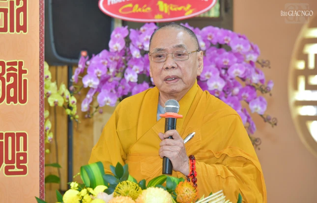 Trưởng lão Hòa thượng Thích Nhật Quang phát biểu - Ảnh: Đăng Huy |