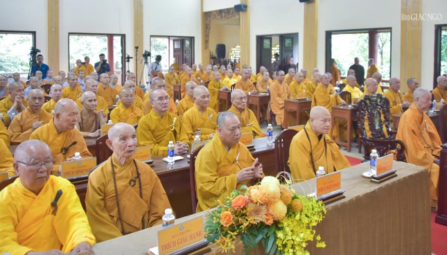 Phát biểu khai mạc, Trưởng lão Hòa thượng Thích Minh Thông ôn lại tiểu sử Hòa thượng Thích Bửu Huệ và Phật học viện Huệ Nghiêm. Theo đó, Phật học viện Huệ Nghiêm được thành lập từ năm 1964, là chiếc nôi đào tạo Tăng tài, trong đó có những vị dấn thân phụng sự, được suy tôn, suy cử nhiều trọng trách của của Giáo hội qua các giai đoạn lịch sử.