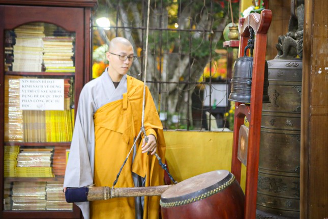 Dịp này, Thượng tọa trụ trì cũng có lời chúc Tết và trao lộc xuân đến các Phật tử đến chùa lễ Phật trong thời khắc chuyển giao giữa năm cũ và năm mới.