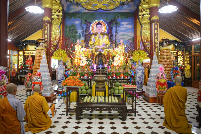 GNO - Đêm giao thừa tại chùa Hoằng Linh (X.An Nhơn Tây, H.Củ Chi) đã diễn ra trong không khí trang nghiêm với bao tấm lòng người con Phật đều hướng về một năm mới bình an, hạnh phúc.