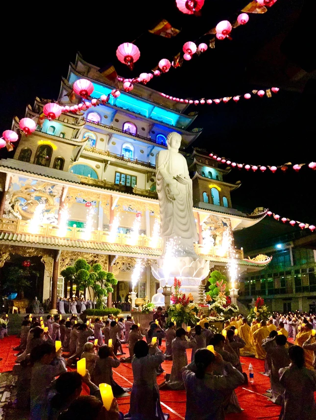 Trong niềm kính tín, nghi thức truyền đăng được diễn ra long trọng và thiêng liêng, từng ngọn nến được thắp lên, truyền từ tôn tượng Đức Phật, đến chư tôn đức, rồi đến Phật tử - hình ảnh của sự dắt dìu và tiếp dẫn, như hạnh nguyện độ tha của Ngài đối với chúng sanh.