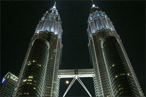 Tòa tháp đôi Petronas ở Kuala Lumpur là tòa nhà cao nhất thế giới trước khi bị "qua mặt" bởi tòa nhà Taipei 101 vào năm 2004. Tuy nhiên, đây vẫn là tòa nhà đôi cao nhất thế giới. Tòa nhà có 88 tầng được xây dựng kiên cố. 2 tòa nhà này được nối với nhau bằng một cây cầu nằm ở tầng 41 và 42 của tòa nhà.