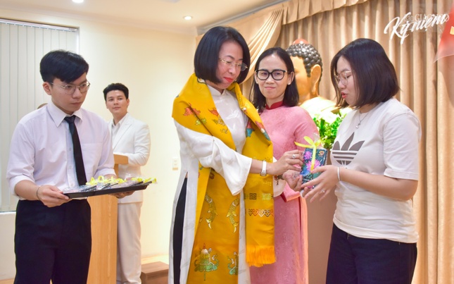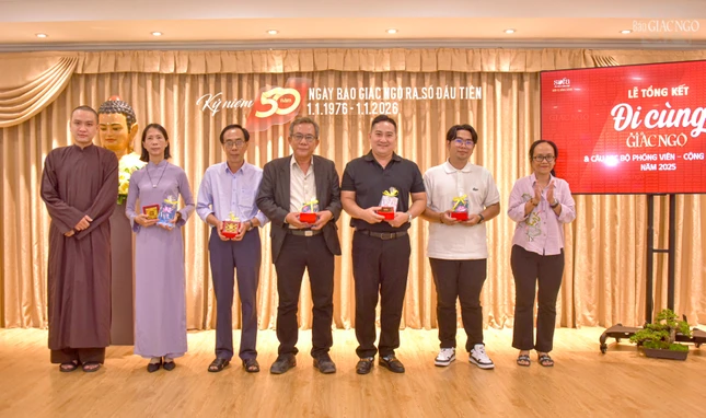 Dịp này, Ban Trị sự GHPGVN TP.HCM đã trao tặng Bằng Công đức ghi nhận những đóng góp của tập thể Câu lạc bộ Phóng viên - Cộng tác viên Báo Giác Ngộ trong năm vừa qua; Câu lạc bộ Phóng viên - Cộng tác viên Báo Giác Ngộ cũng trao quà tri ân đến các tác giả, cộng tác viên tham dự chuyên mục Đi cùng Giác Ngộ.