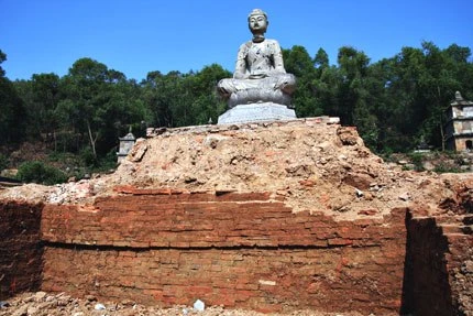 Tượng A Di Đà trên lớp chân móng chùa Phật Tích