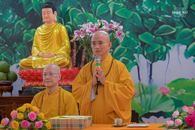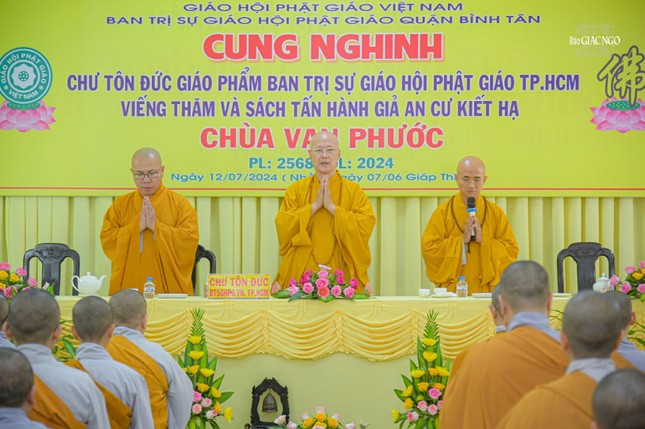 Thay mặt Ban Trị sự GHPGVN Q.Phú Nhuận và Ban Chức sự các hạ trường, Thượng tọa Thích Trí Thanh, Phó Trưởng ban kiêm Chánh Thư ký Ban Trị sự quận gửi lời tri ân đến chư tôn đức trong đoàn đã đến thăm và sách tấn chư hành giả an cư.
