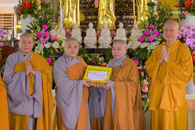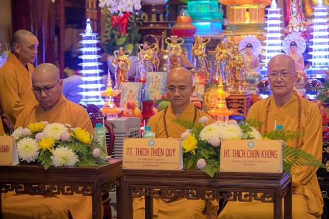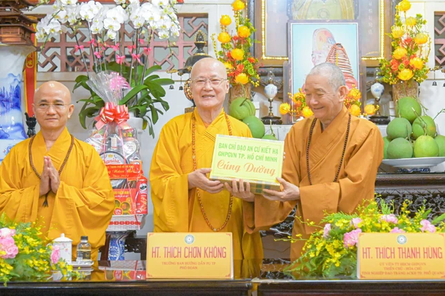 Đi cùng đoàn có Hòa thượng Thích Chơn Không, Ủy viên Thường trực Ban Trị sự, Trưởng ban Hướng dẫn Phật tử GHPGVN TP.HCM; Thượng tọa Thích Nhuận Hạnh, Ủy viên Ban Trị sự, Phó Chánh Văn phòng Ban Trị sự GHPGVN TP.HCM; Ni sư Thích nữ Như Nguyệt, Ủy viên Thường trực Ban Trị sự GHPGVN TP.HCM.