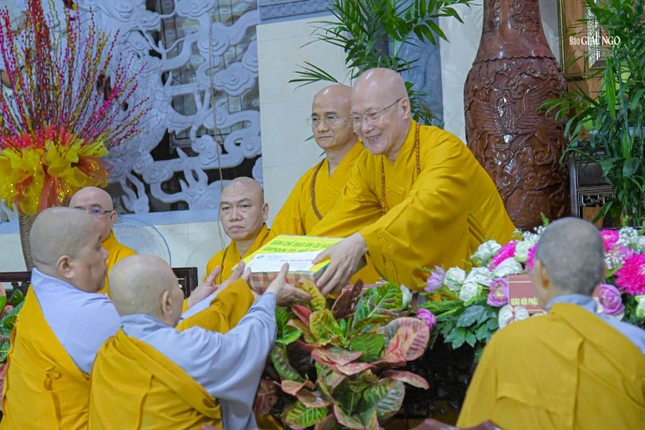 Sau đó, phái đoàn đã dâng cúng dường tịnh tài, tịnh vật đến Ban Chức sự hạ trường.