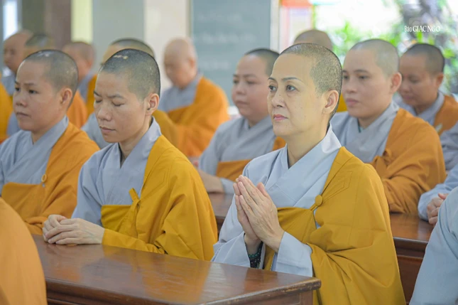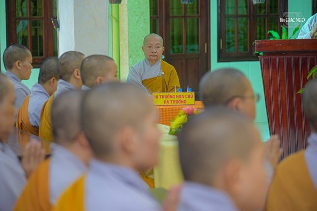 Trong không khí trang nghiêm, sau báo cáo của chư Ni tại hạ trường, Thượng tọa Thích Thiện Quý đã gửi lời chúc sức khỏe đến Ban Chức sự và sách tấn chư hành giả phải luôn tinh tấn tu học, hạn chế tiếp xúc với các ngoại duyên, lấy giới luật làm thầy, nhằm thúc liễm thân tâm, trau dồi giới đức.