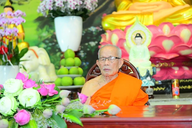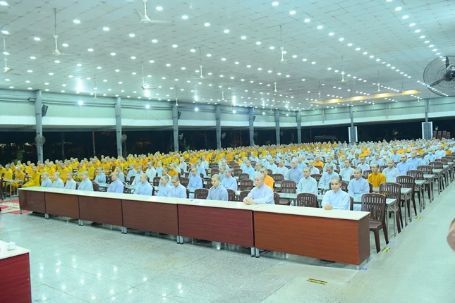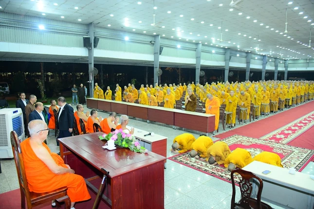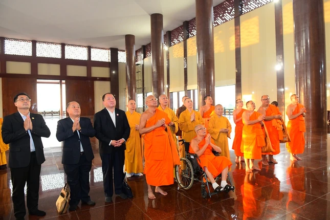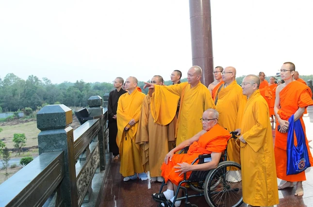 Tại đây, Trưởng lão Hòa thượng Maha Bounma Simmaphom, Chủ tịch Trung ương Liên minh Phật giáo Lào đã có buổi nói chuyện với hơn 1.000 Tăng Ni sinh. Sau đó, đoàn đã thành kính lễ Phật tại chánh điện và tham quan học viện.