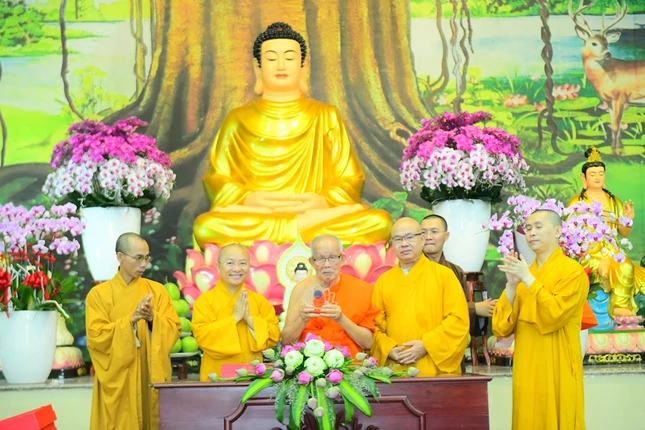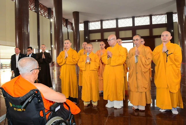 Thượng tọa Thích Nhật Từ, Ủy viên Thường trực Hội đồng Trị sự, Phó Viện trưởng Thường trực Học viện Phật giáo VN tại TP.HCM cùng chư tôn đức Hội đồng Điều hành, Ban Quản viện đã hoan hỷ đón tiếp phái đoàn.