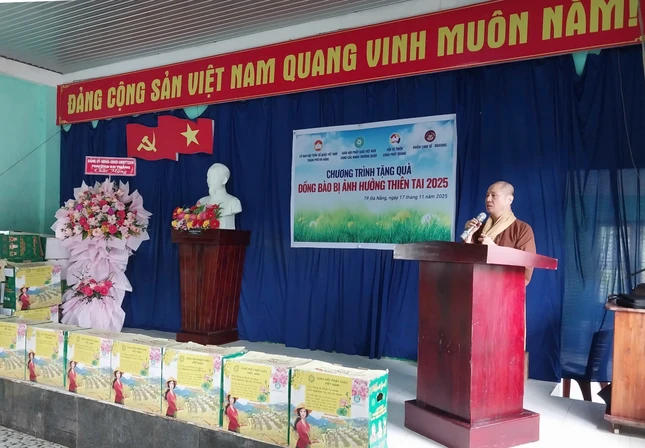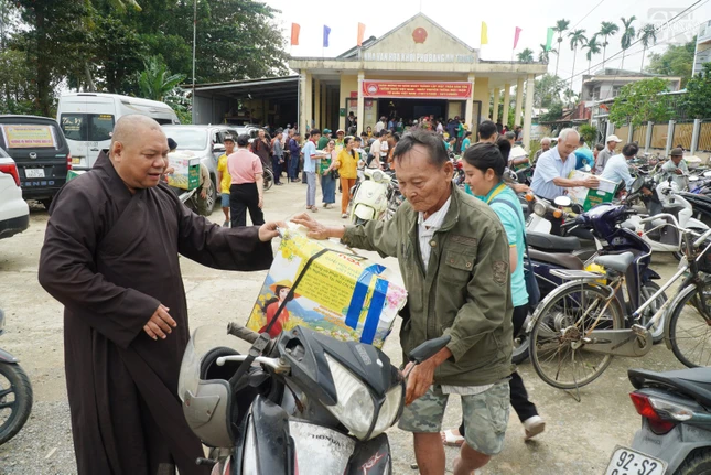 Đoàn Ban Kinh tế - Tài chính T.Ư, Ban Từ thiện xã hội Phật giáo TP.HCM, chư Tăng Ni TP.HCM; nhóm Chia sẻ Sharing của bà Mai Thị Hạnh - phu nhân nguyên Chủ tịch nước Trương Tấn Sang, nhóm Mãi yêu thương; cùng đại diện các doanh nghiệp, các nhà hảo tâm trao quà đến bà con tại Đà Nẵng |