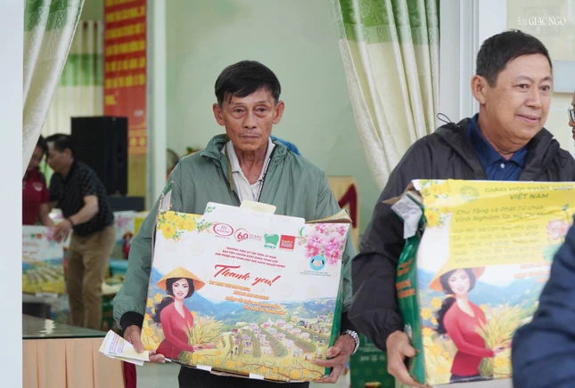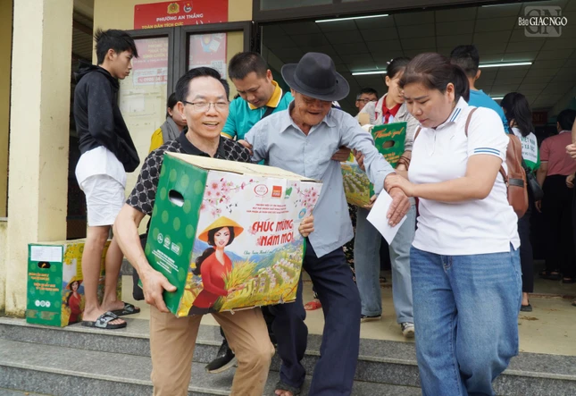 Ôm chầm món quà vừa được nhận, bà Giảng Thị Năm (sinh năm 1942) cho biết vừa có tiền mặt, vừa có đủ thứ nhu yếu phẩm, một mình bà ăn cả tháng cũng chưa hết.