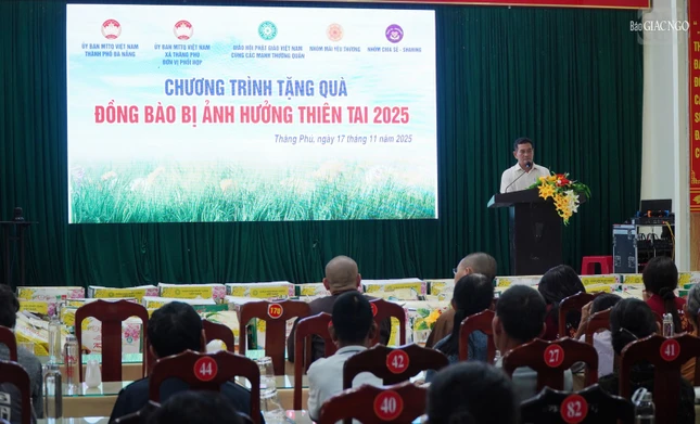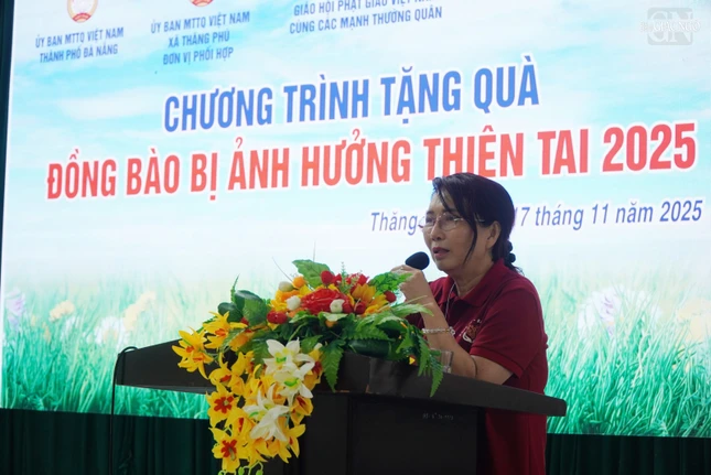 Trong ngày 17-11, Đoàn Ban Kinh tế - Tài chính T.Ư, Ban Từ thiện xã hội Phật giáo TP.HCM, chư Tăng Ni TP.HCM; nhóm Chia sẻ Sharing của bà Mai Thị Hạnh - phu nhân nguyên Chủ tịch nước Trương Tấn Sang, nhóm Mãi yêu thương; cùng đại diện các doanh nghiệp, các nhà hảo tâm đã trao tặng 800 phần quà đến bà còn tại xã An Thắng, Thăng Phú, Hà Nha của TP.Đà Nẵng. Mỗi phần quà gồm có: 5kg gạo, 1 thùng mì, cháo, sữa, nước tương, nước chấm chay, bột canh, hạt nêm, dầu nóng... và 1 triệu đồng tiền mặt.