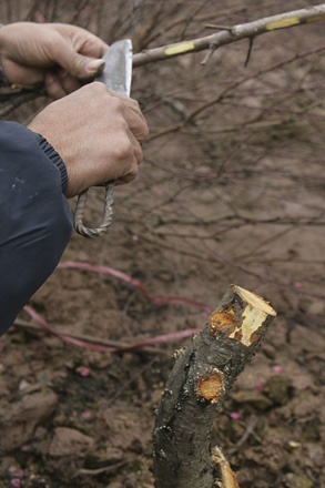 Các cây đào sẽ được khoanh (dùng dao khứa vòng quanh thân cây) vào