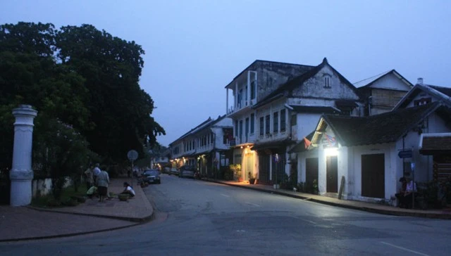 Sáng sớm ở khu phố trung tâm của Luang Prabang, không khí trong lành và vắng vẻ. Đây là nơi nhiều sư đi khất thực qua.