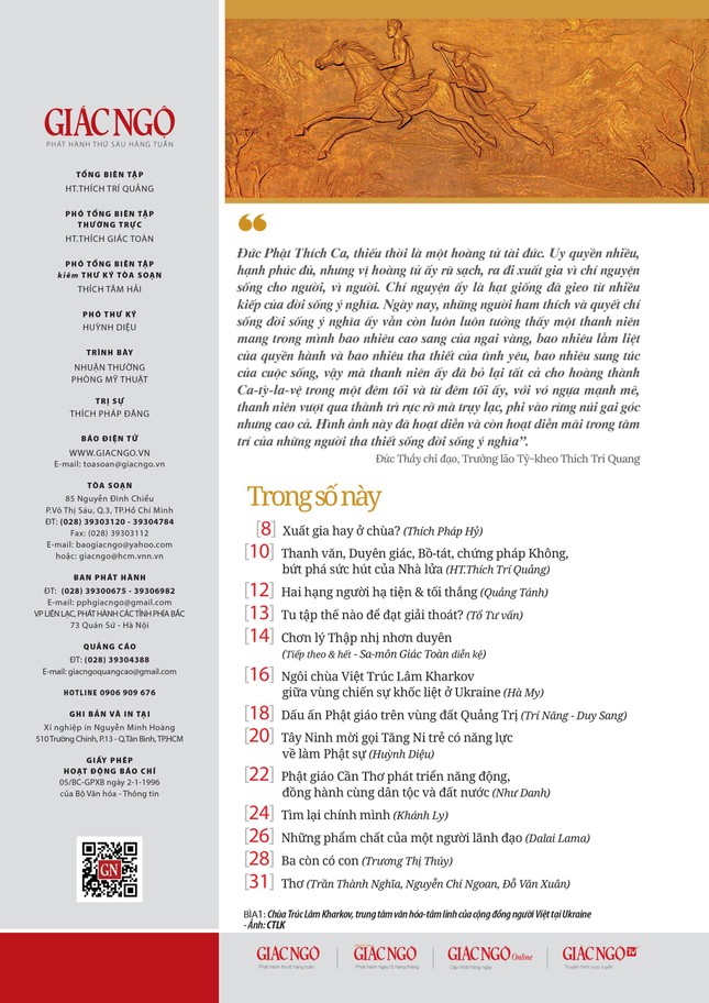 - Mục Điểm nhìn: có đăng bài "Xuất gia hay ở chùa?" của tác giả Thích Pháp Hỷ.