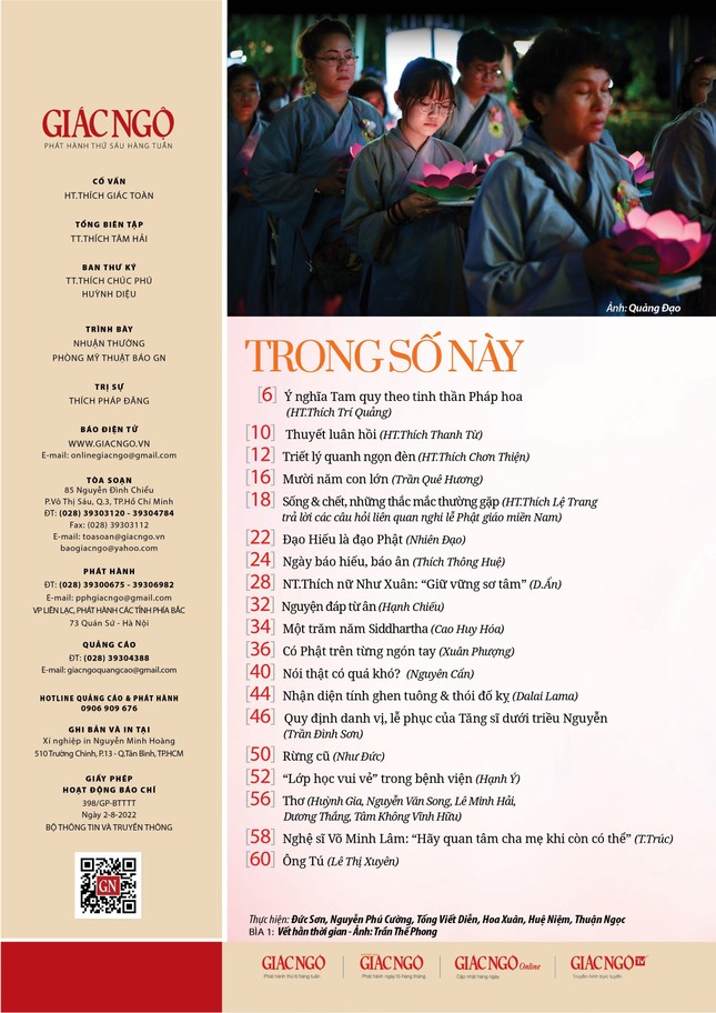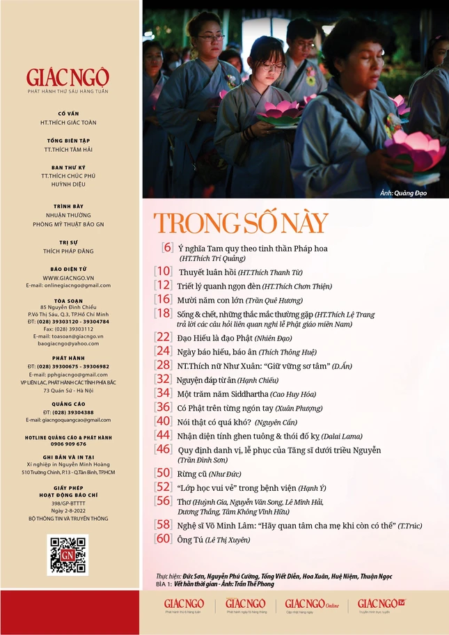 Bìa 1 Báo Giác Ngộ số Vu lan - Ảnh: Trần Thế Phong, Mỹ thuật: Tống Viết Diễn |