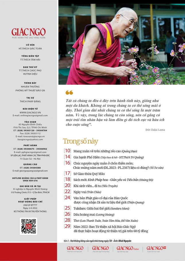 - Mục Tư vấn: chia sẻ cùng bạn đọc những vấn đề về: "Chúc nguyện ngày xuân ở chốn thiền môn"; "Chúc mừng năm mới (DL.2023 - PL.2567) liệu có đúng?".