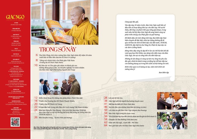 Và đặc biệt, thay cho Thư Tổng Biên tập nhân kỷ niệm 50 năm Báo Giác Ngộ, Thượng tọa Thích Tâm Hải đã có những sẻ chia qua bài viết Miễn được lòng rồi chẳng cầu phép khác.