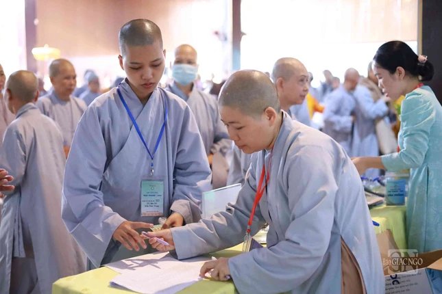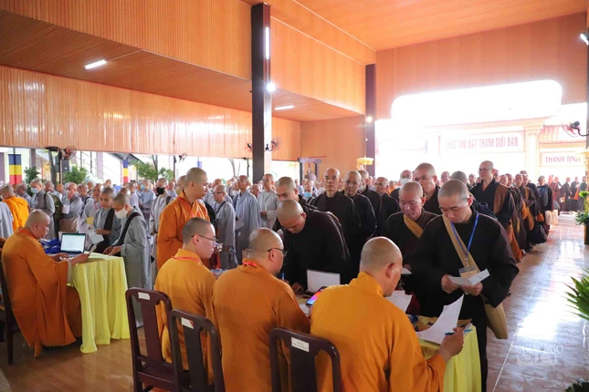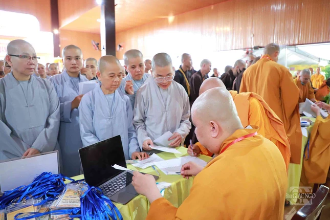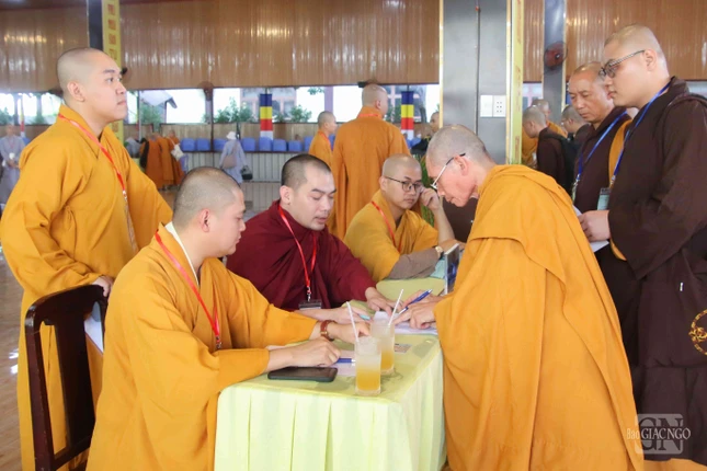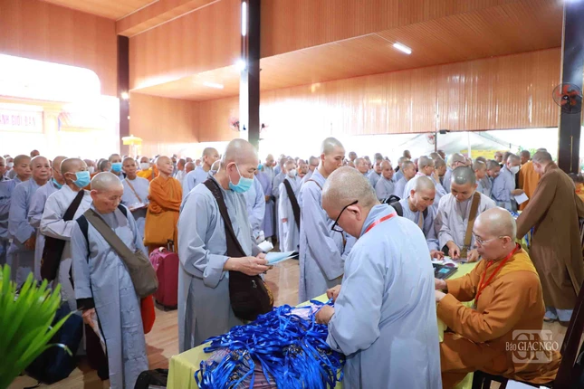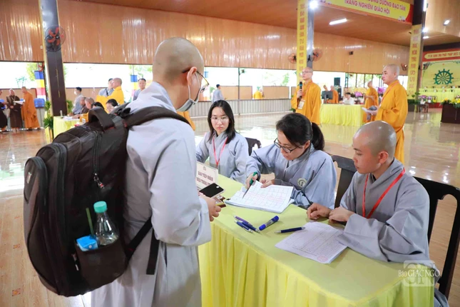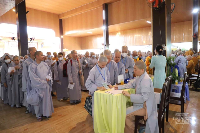 GNO - Sáng nay, 25-4, các giới tử Đại giới đàn Đạt Thanh tập trung làm thủ tục nhập chúng tại chùa Tỉnh Hội (TP.Biên Hòa), chính thức bắt đầu sinh hoạt ngày đầu tiên của Đại giới đàn do Ban Trị sự GHPGVN tỉnh Đồng Nai tổ chức.