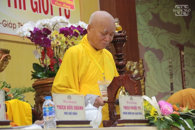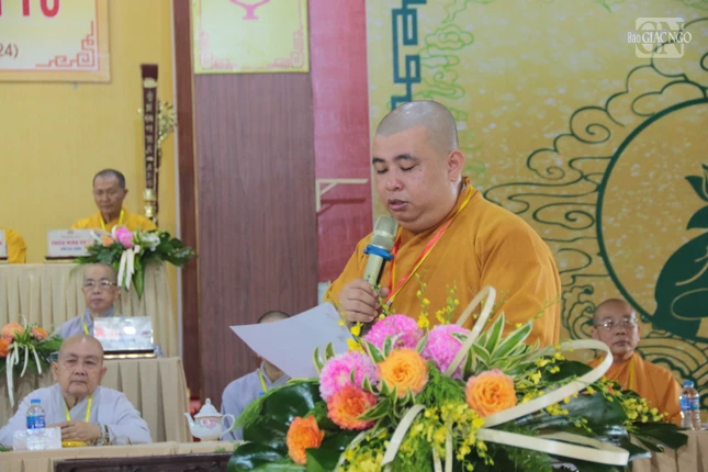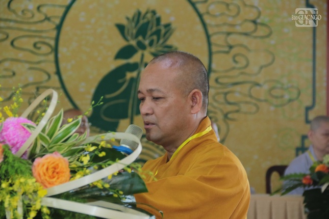 Thượng tọa Thích Đạo Huy báo cáo công tác tổ chức và thông qua nội quy kỳ thi |