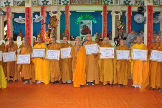 Cũng tại buổi lễ, Ban Trị sự đã trao Bằng chức sự và thập sư Tăng Ni cho chư tôn đức Tăng Ni trong Ban Chức sự và hội đồng nhị bộ thập sư.