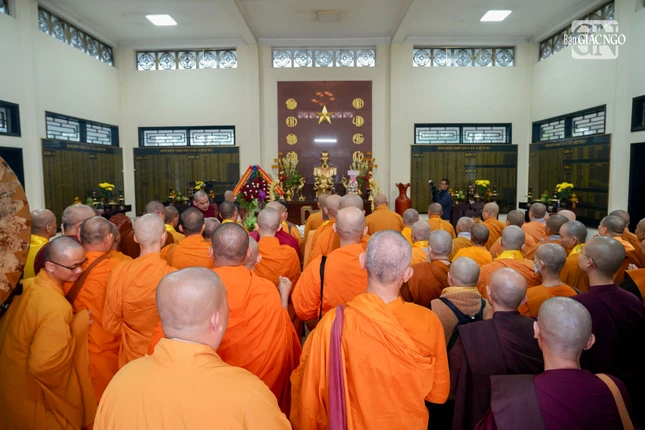 | Chư tôn đức dâng hương tưởng niệm lịch đại Tổ sư tại tổ đường chùa Tỉnh Hội |