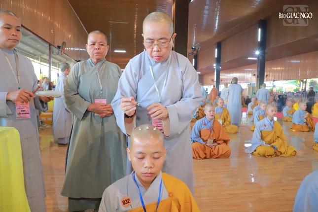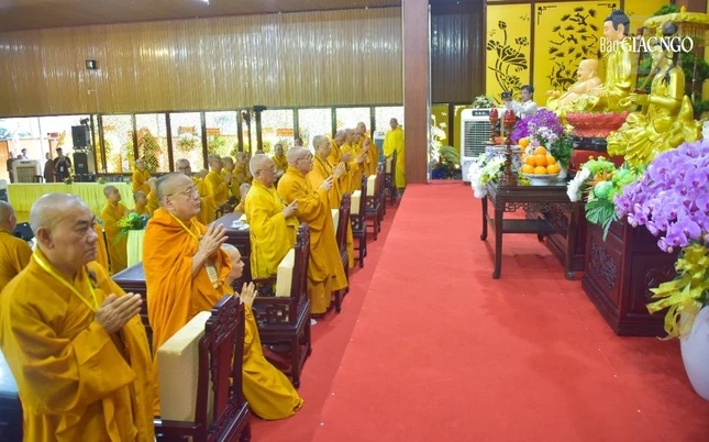 Trưởng lão Hòa thượng Thích Nhật Quang, Ủy viên Thường trực Hội đồng Chứng minh, Chứng minh Ban Trị sự GHPGVN tỉnh Đồng Nai niêm hương bạch Phật, cùng chư vị giới sư đảnh lễ Tam bảo, các vị Đại Bồ-tát và an vị pháp tòa.
