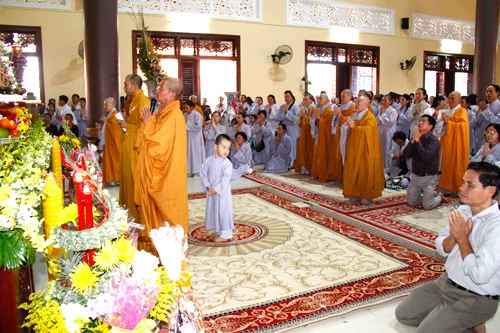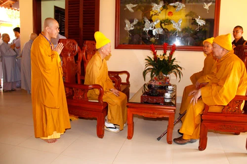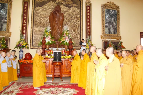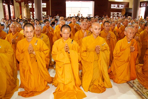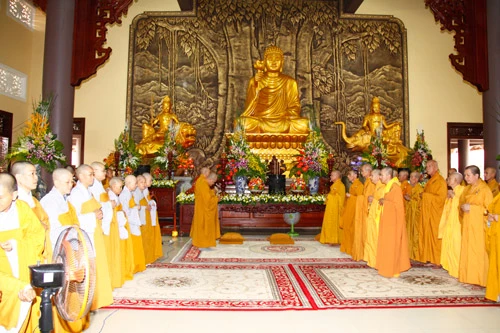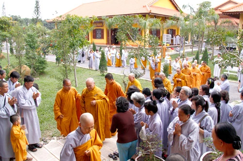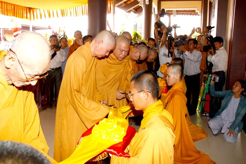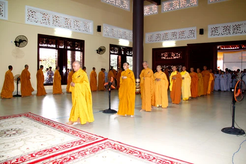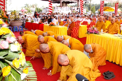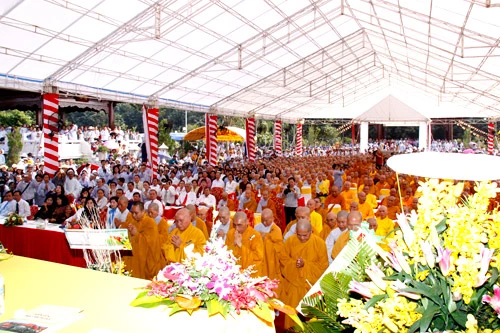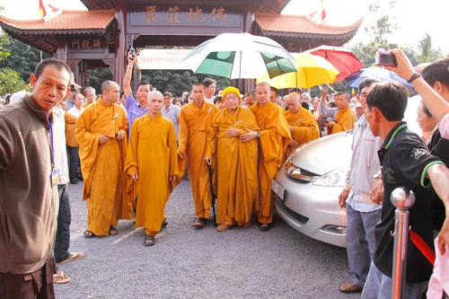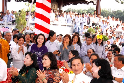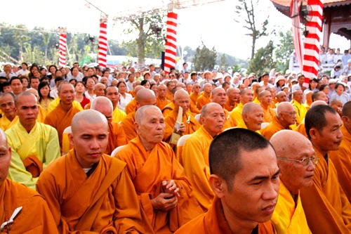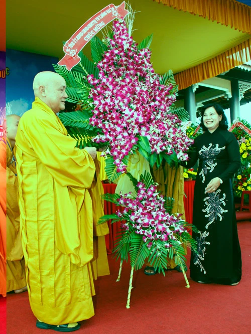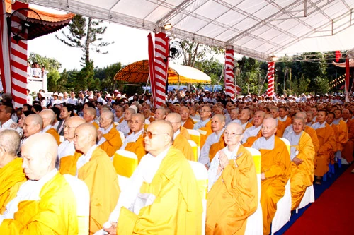 Hòa thượng Thích Trí Quảng - Phó Chủ tịch HĐTS cùng chư tôn đức ỉnh lân cận, đại diện lãnh đão ban ngành của trung ương và địa phương, khoảng 10.000 Phật tử từ khắp nơi về tham dự.