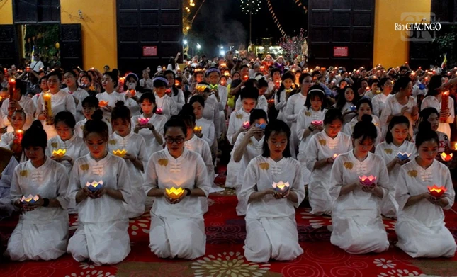 GNO - Tối 25-2, tại thiền viện Phước Sơn (TP.Biên Hòa) diễn ra lễ hội cúng đèn rằm tháng Giêng theo truyền thống, đồng cử hành khai mạc khóa Thiền Vipassana mùa xuân - 2024.