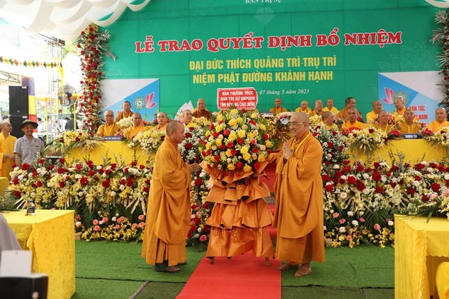 Buổi lễ cũng đã nhận được nhiều lẵng hoa, quà của Ban Trị sự, lãnh đạo chính quyền chúc mừng Đại đức tân trụ trì.