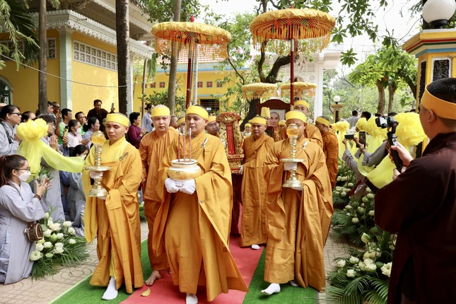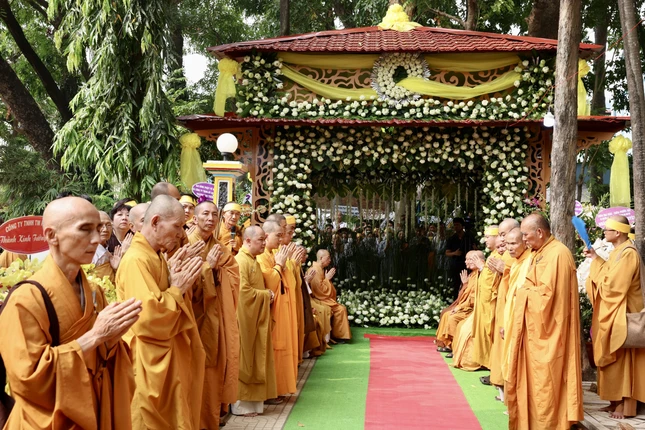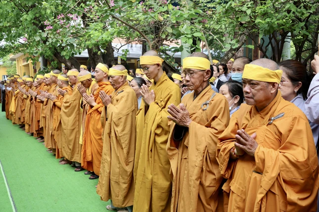 GNO - Sáng 14-4 (24-2 nhuần-Quý Mão), tại tổ đình Quan Âm tu viện (Biên Hòa, Đồng Nai) đã trang nghiêm diễn ra lễ truy niệm, phụng tống kim quan Trưởng lão Hòa thượng Thích Giác Quang nhập bảo tháp.