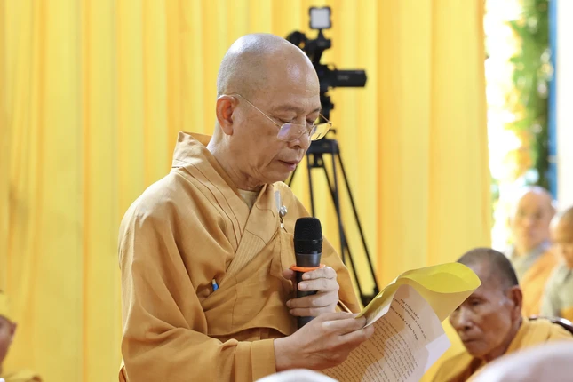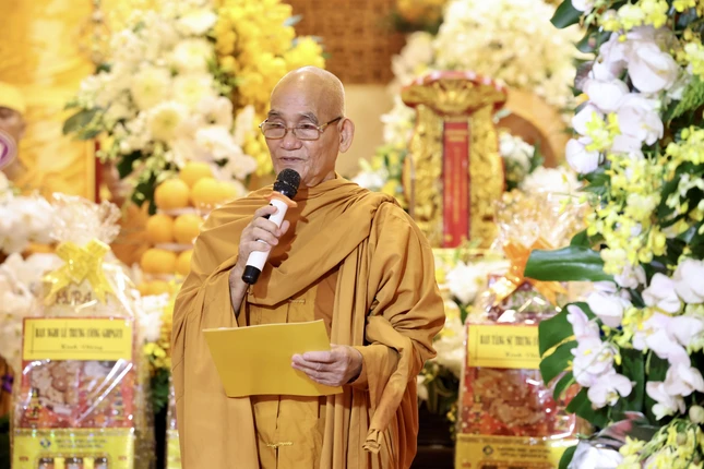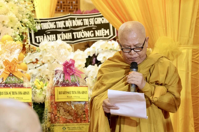 Tiếp theo chương trình, Trưởng lão Hòa thượng Thích Huệ Minh, Ủy viên Thường trực Hội đồng Chứng minh GHPGVN đọc lời tưởng niệm của Hội đồng chứng minh, Hội đồng Trị sự, tán thán công đức cố Trưởng lão Hòa thượng: “Với trọng trách của bậc sứ giả Như Lai, bằng tinh thần phụng sự Đạo pháp, tiếp dẫn hậu lai, báo Phật ân đức, trong hơn 77 năm trụ thế, 57 năm hoằng dương Chánh pháp, là bậc thạch trụ, mô phạm chốn rừng thiền, Trưởng lão Hòa thượng là hiện thân của giải thoát vô ngại".
