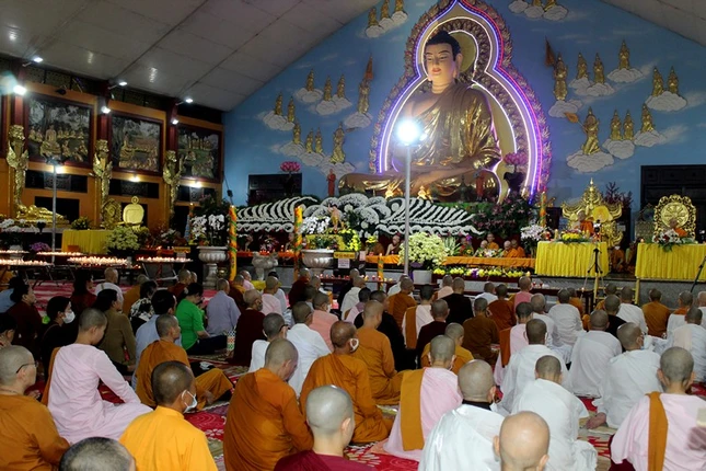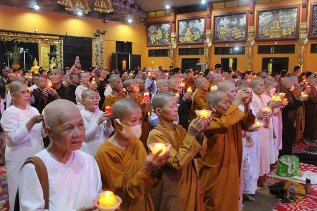 Lễ cúng đèn được thiền viện Phước Sơn cử hành vào tối ngày Rằm tháng Tư |