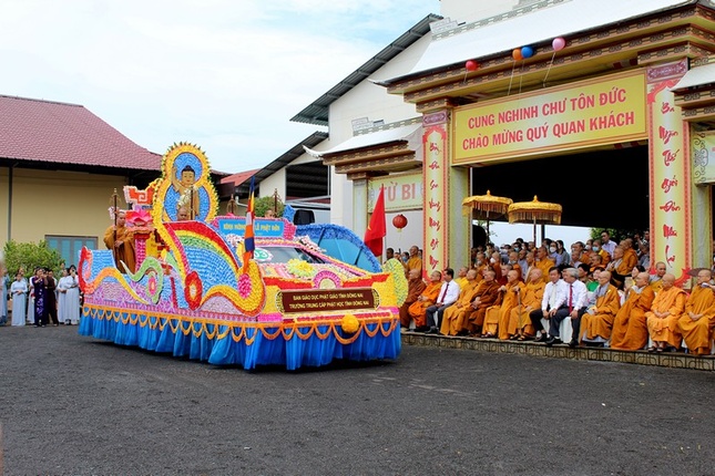 Tại Đại lễ, đại diện Tỉnh ủy, HĐND, UBND, UBMTTQ tỉnh, ông Cao Văn Quang, Chủ tịch UBMTTQVN tỉnh đọc thư chúc mừng Phật đản, có lời thăm hỏi, chúc mừng tốt đẹp nhất đến Tăng Ni, Phật tử.