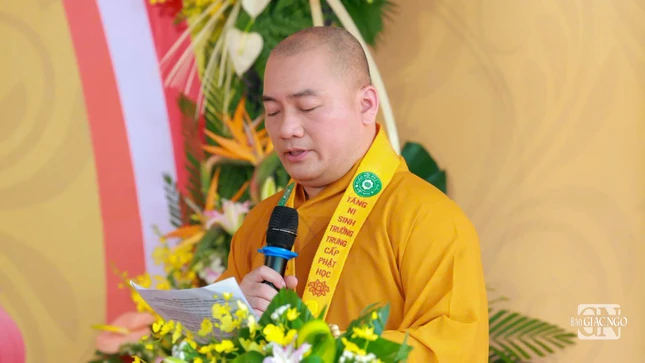 Đại diện Ban Giáo dục Phật giáo T.Ư, Thượng tọa Thích Phước Đạt có lời tán thán công đức Ban Trị sự, Ban Giám hiệu và chư vị giáo thọ sư đã dày công vun bồi cho sự nghiệp giáo dục.