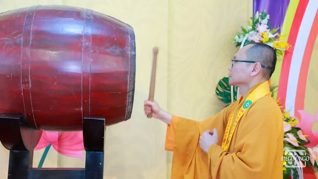 Buổi lễ khép lại trong niềm hoan hỷ, 450 Tăng Ni sinh khóa XII chính thức bắt đầu năm học mới trong tiếng trống khai giảng của Đại đức Hiệu trưởng.